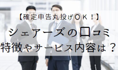 スポット(単発)で、確定申告書作成を税理士に依頼できるサービス「SHARES」(シェアーズ)を紹介しています。 特徴やサービス内容、そして口コミ(評判)や登録方法などをわかりやすく説明しています。相談料や月額費、成約時の成果報酬も無料です。